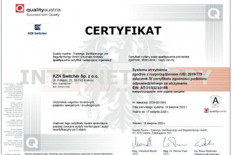 XI Commercial Department, under the number 0000902146, NIP 6793217564, REGON 389030198. Share capital PLN 1 900 000, paid in full - 100% shares in KZN Switcher are held by KZN Bieżanów.